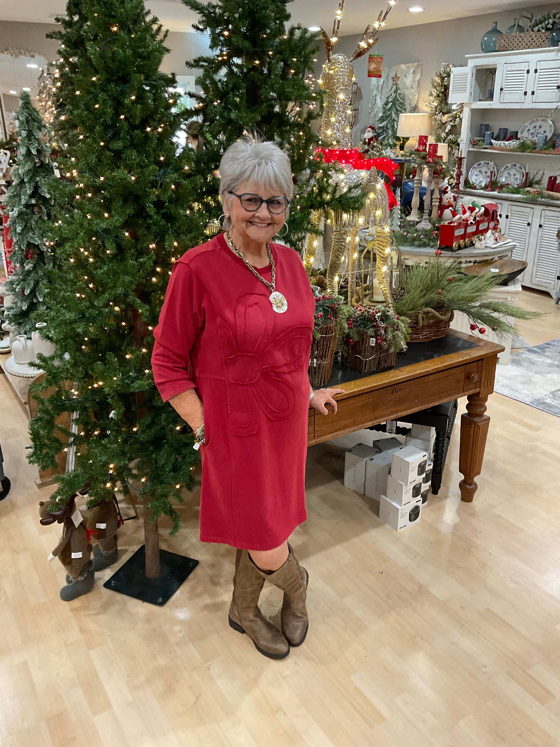 3/4 SLV FLOWER DRESS