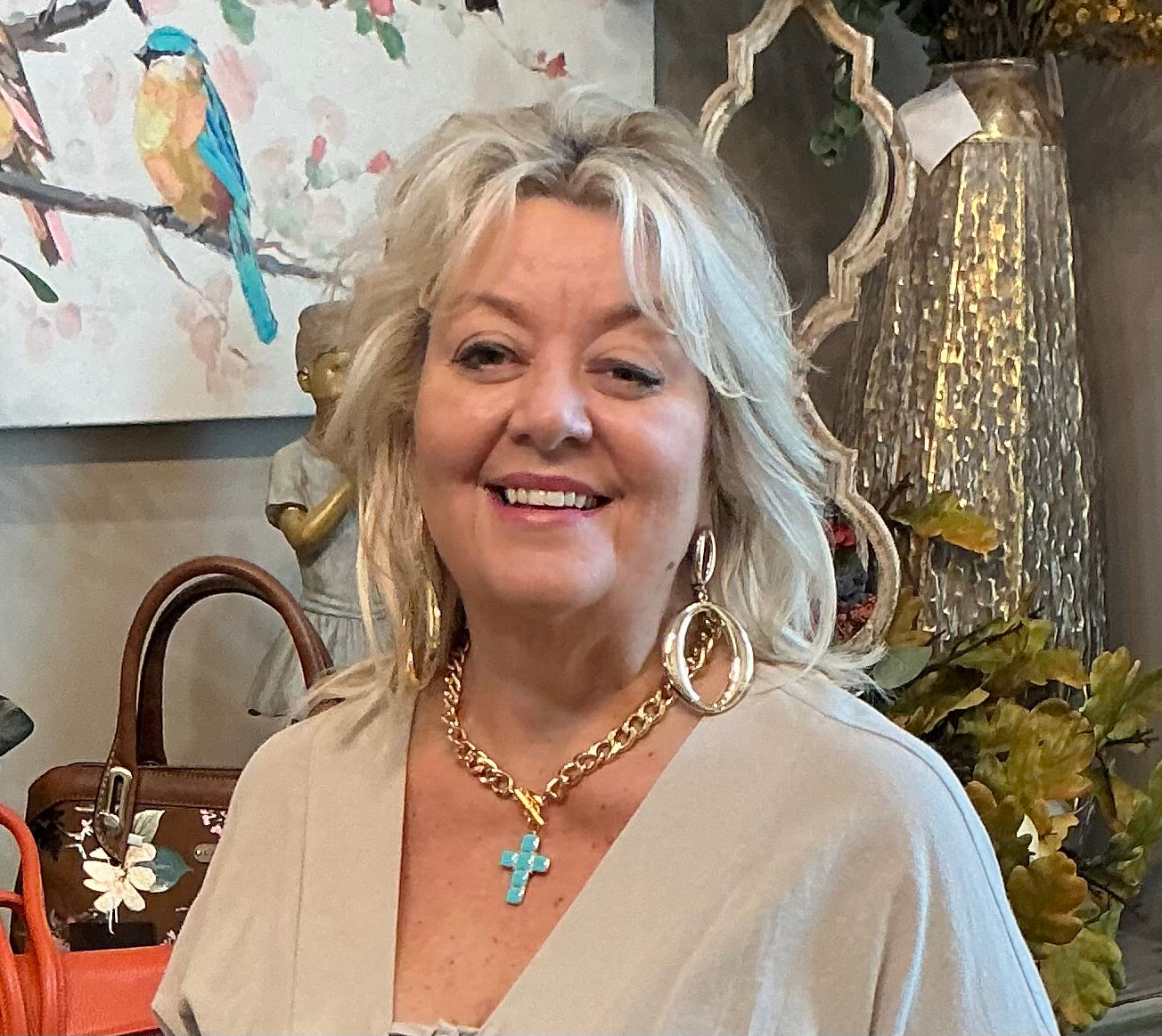 GOLD NECKLACE TURQUOISE CROSS